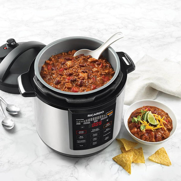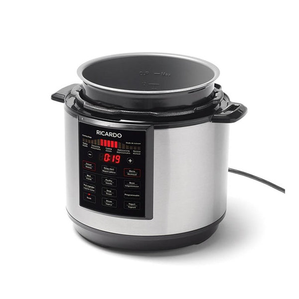 Cet autocuiseur électrique RICARDO de 6 litres permet de cuisiner de délicieux repas débordant de saveur en un temps record, soit en 30 minutes. Ultra-sécuritaire et performant, il permet, entre autres, de préparer des bouillons maison, des légumineuses, du poulet, des ragoûts et même du yogourt ! Bonus : le temps de cuisson étant réduit, l’apport en nutriments de vos aliments demeure supérieur qu’avec les autres méthodes de cuisson.